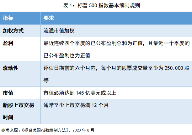 一般而言,指数成份股是根据编制方案上约定好的可量化的筛选标准进行挑选。但是,标普500编制方案中明确:“成份股会依指数委员会的自由裁量权及根据资格标准选择”。也就是说,除了根据一些量化的指标外,指数委员会还可以在选股时加入主观判断,对选股会发挥一定的作用。
