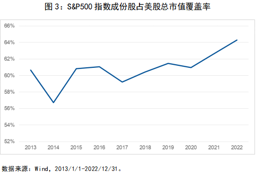 历史上来看,S&P500指数成份股对美股的市值覆盖度也持续维持在较高水平,基本约60%以上。