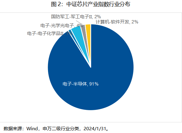 中证芯片产业指数聚焦于芯片半导体行业。行业分布中,半导体行业权重高达91%,覆盖包括芯片设计、半导体设备、集成电路制造、半导体材料等细分领域,包括了芯片产业发展的各个方面代表性公司,对半导体行业的表征性较强。