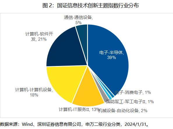 国证信创指数以“信创”为主题,从行业上看,半导体(39%)、软件开发(21%)、计算机设备(18%)、IT服务(13%)是国证信创指数中的四大主要行业,对于信创产业中基础硬件、基础软件、应用软件与网络安全等细分领域形成了较好的表征。