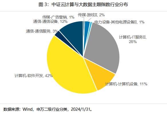 云计算与大数据指数侧重于把握产业中游算力、大数据板块表现,涉及行业集中于计算机、通信和传媒。