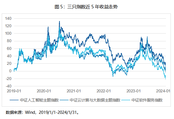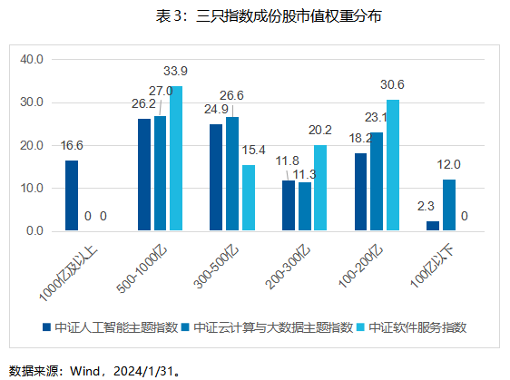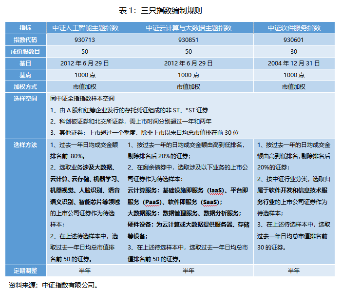 【要点:选样范围各有侧重,人工智能指数覆盖人工智能全产业链,云计算与大数据指数侧重产业链中游,软件服务指数更侧重于覆盖产业链下游软件应用环节】