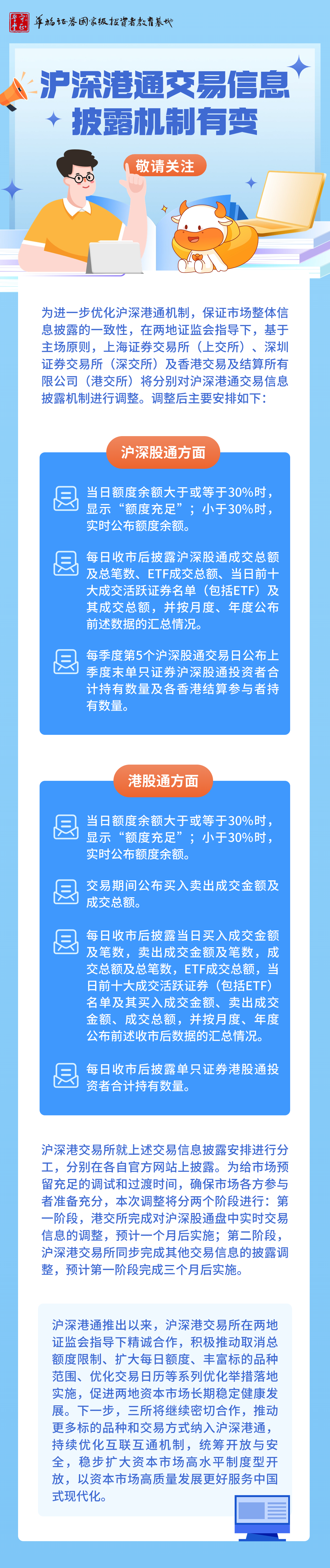 投资者请注意:沪深港通交易信息披露机制有变,敬请关注!