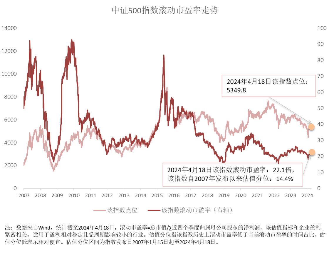 财联社4月19日电,截至11:10,中证500指数下跌0.7%。目前指数滚动市盈率约22倍,处于指数发布以来约14%分位处。