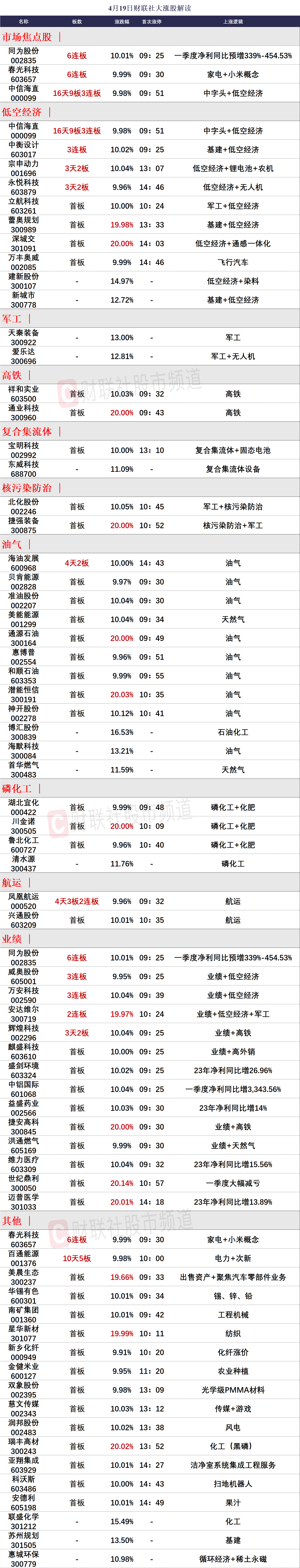 4月19日涨停分析