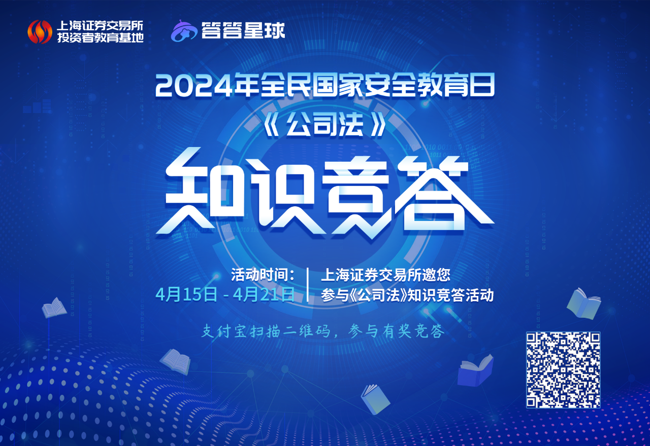2024年4月12日是第九个全民国家安全教育日。值此之际,为进一步做好证券期货领域普法宣传工作,上海证券交易所诚邀您参与“公司法”有奖知识竞答活动,答题红包等您拿!