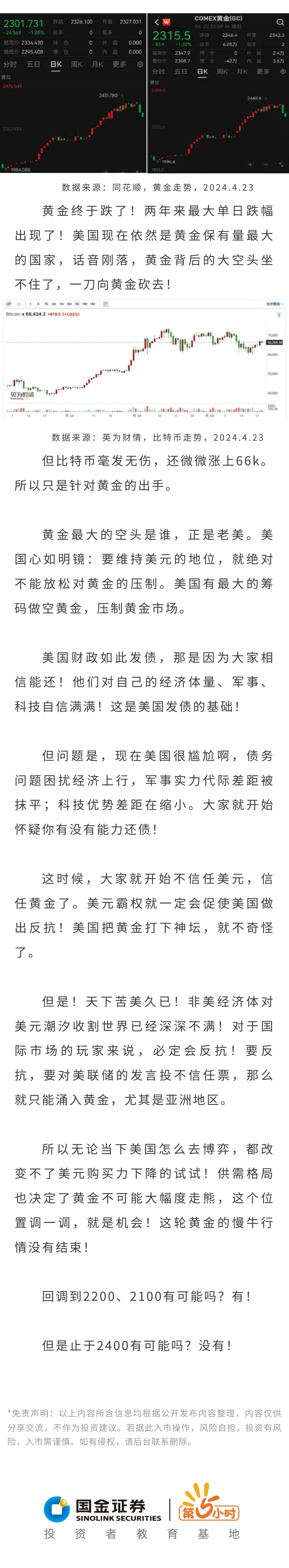 黄金终于跌了!两年来最大单日跌幅出现了!