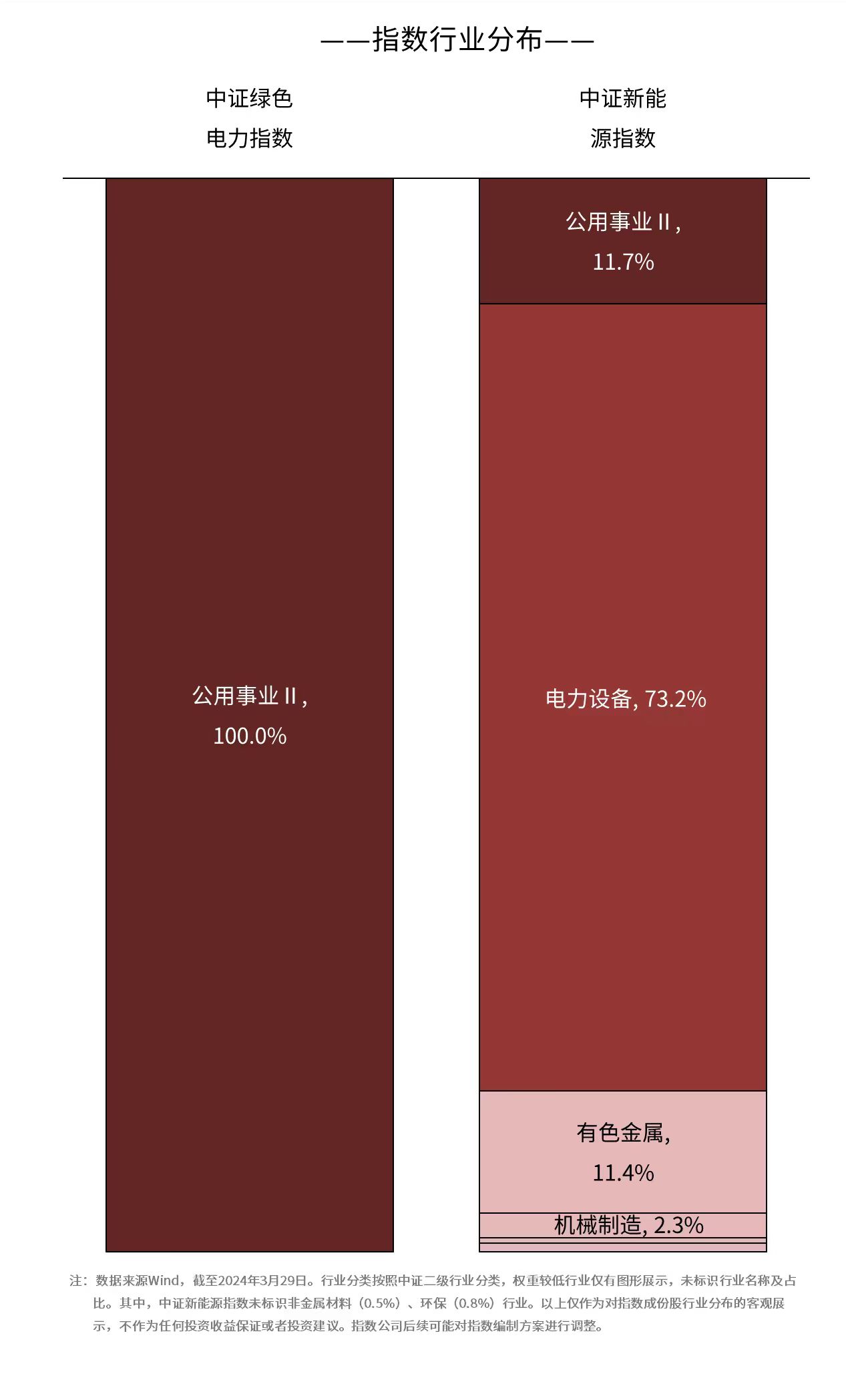 财联社4月24日电,根据国家能源局发布数据,1-3月太阳能发电装机容量6.6亿千瓦,同比增长55.0%;风电装机容量4.6亿千瓦,同比增长21.5%。我国风电太阳能发电装机容量继去年连续突破8亿、9亿、10亿千瓦后,日前再次突破11亿千瓦,电力装机延续绿色低碳发展趋势。随着我国能源转型步伐不断加速,聚焦A股发电侧绿色转型电力上市公司的中证绿色电力指数、聚焦用电侧绿色低碳龙头以及新能源设备商的中证新能源指数有望受益,绿色电力ETF(562960)、新能源ETF易方达(516090)等跟踪相关指数的产品配置价值受到市场关注。