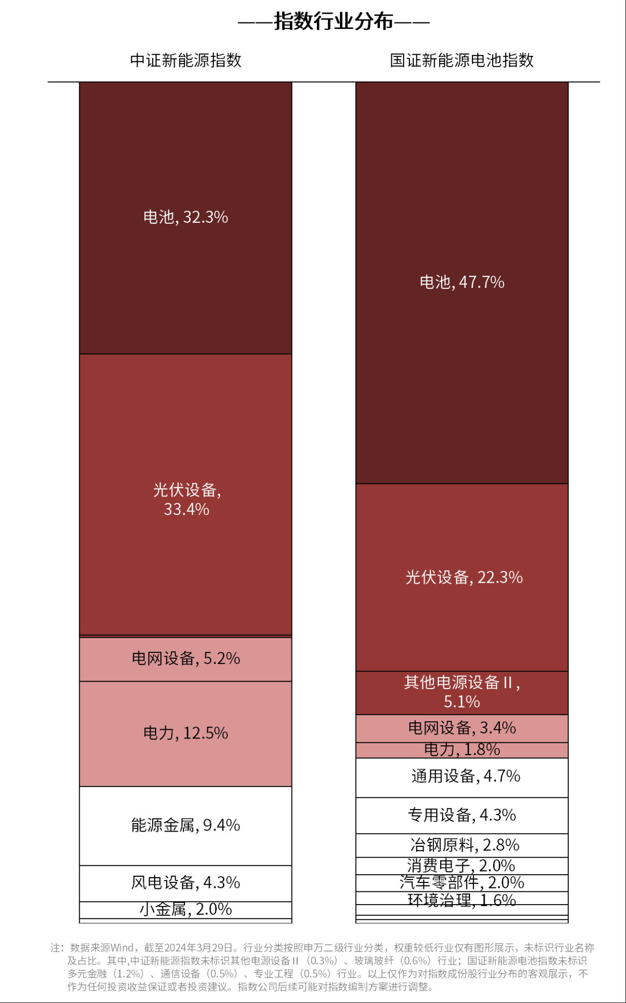 近期利好政策密集发布,储能电池市场需求广阔。国证新能源电池指数聚焦储能产业链,是纯正的储能主题指数,电池为第一大权重行业,占比近50%;中证新能源指数聚焦新能源用电侧和设备商,前三大权重行业光伏设备、电池、电力合计占比近80%。储能电池ETF(159566)、新能源ETF易方达(516090)等跟踪相关指数的产品,可助力投资者便捷布局板块龙头。
