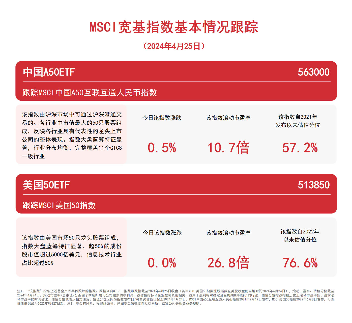 MSCI两大指数收红 中国A50ETF(563000)、美国50ETF(513850)等产品布局大国核心资产
