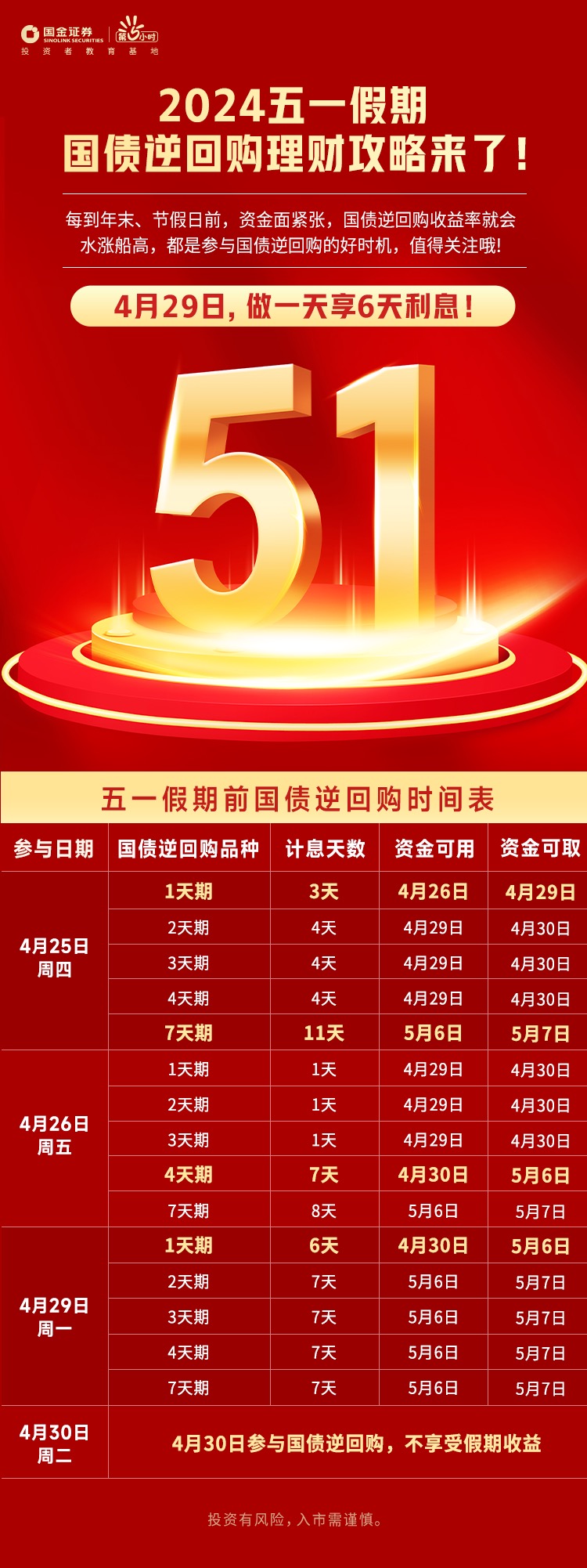 节假日逆回购提示∣2024五一假期国债逆回购理财攻略来了!