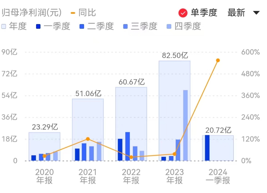 财联社4月29日电,洛阳钼业发布一季报,公司2024年第一季度实现营业收入461.21亿元,同比增长4.15%;净利润20.72亿元,同比增长553.28%。报告期内,伴随TFM混合矿项目达产,公司铜钴产品产销量实现增长,同时,公司持续提升精益管理,整体成本较上年同期下降,利润实现同比上升。小财注:2023年Q4净利58.07亿元,据此计算,2024年Q1净利环比下降64%。