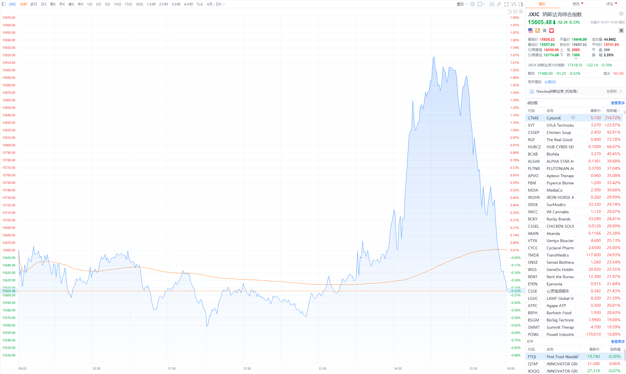 财联社5月2日电,美联储维持利率不变,鲍威尔表示对今年是否会降息没有太大的信心。美股三大指数收盘涨跌不一,道指涨0.23%,纳指跌0.33%,标普500指数跌0.34%。大型科技股涨跌不一,亚马逊、Meta涨超2%,微软涨超1%,奈飞、谷歌小幅上涨;英伟达跌超3%,特斯拉跌超1%,苹果、英特尔小幅下跌。通过邮轮提供离岸休闲旅行服务的Viking Holdings Ltd.(VIK)美国IPO首日涨超8%。
