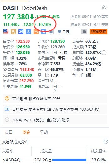 Doordash美股盘后跌超10%