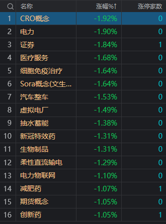 财联社5月15日电,市场早盘弱势震荡调整,三大指数均小幅下跌。盘面上,房地产板块再度走强,光大嘉宝、天地源、我爱我家、云南城投涨停。家居板块表现活跃,亚振家居涨停。化工、化纤股盘中拉升,苏州龙杰、南京化纤、龙星化工涨停。低空经济概念股震荡反弹,声迅股份、上工申贝涨停。下跌方面,电力股陷入调整,西昌电力跌停。总体上个股上涨和下跌家数基本相当。沪深两市半日成交额4675亿,较上个交易日缩量595亿。板块方面,房地产、黄金、家用轻工、磷化工等板块涨幅居前,电力、CRO、证券、Sora概念等板块跌幅居前。截至收盘,沪指跌0.17%,深成指跌0.14%,创业板指跌0.13%。