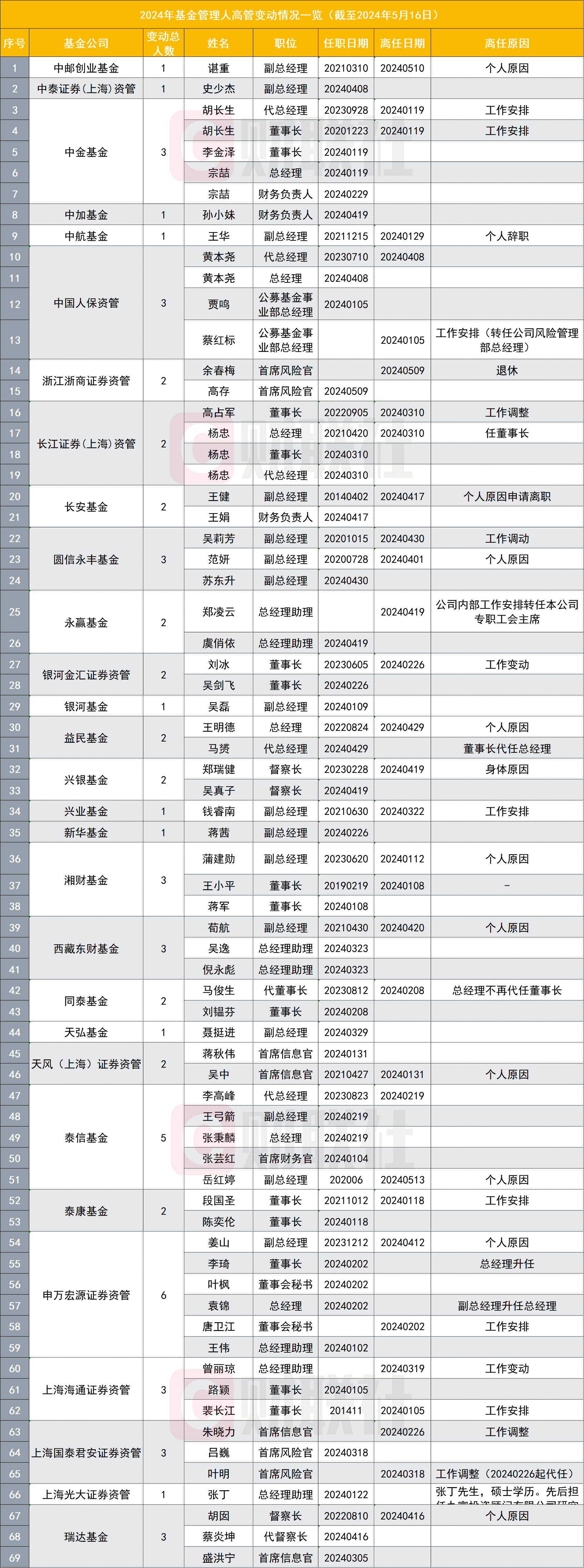 ①财联社记者不完全统计数据显示,年内披露94起高管变更公告,涉及141位高管变更; ②16家基金管理人董事长变更,任期分化极致,背后的原因是什么?