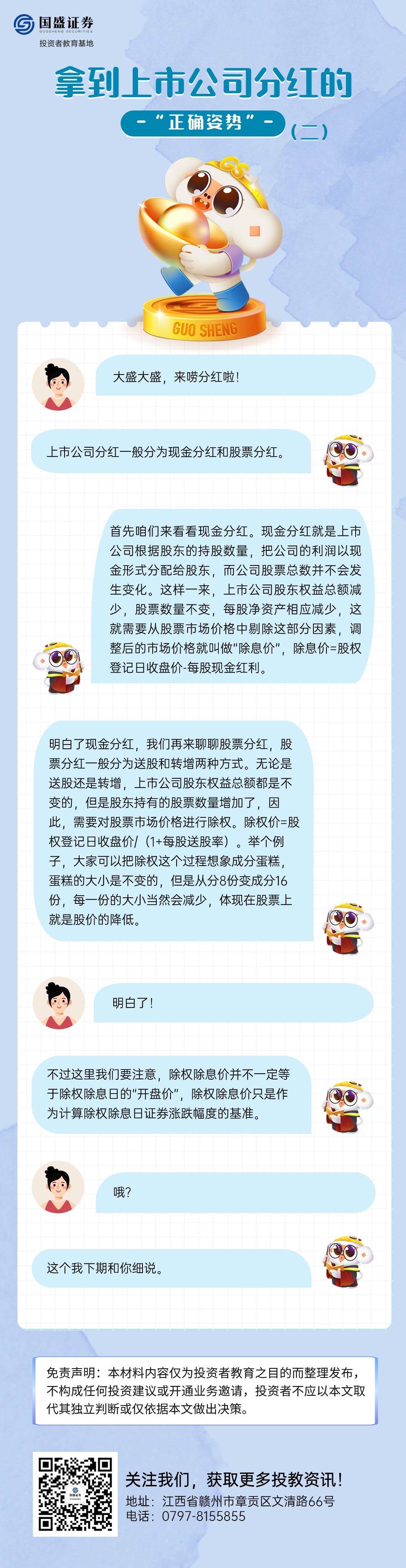 编者按:为帮助投资者理解上市公司现金分红机制,国盛证券投教基地特别制作《拿到上市公司分红的“正确姿势”》系列条漫。接下来让我们一起来了解吧