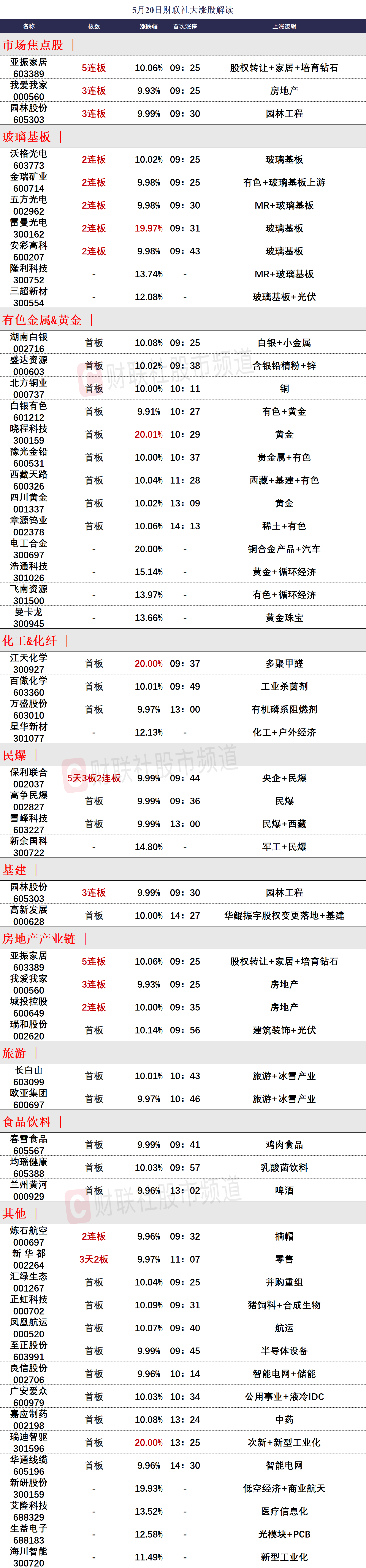 今日共42股涨停,连板股总数11只,17股封板未遂,封板率为71%(不含ST股、退市股及未开板新股)。焦点股方面,高度板南京化纤午后上演“天地板”,地产链午后也冲高回落,荣盛发展、城建发展炸板,剩下亚振家居5连板、我爱我家3连板、园林股份3连板。今日沪深两市收涨个股2670只,收跌个股2267只。