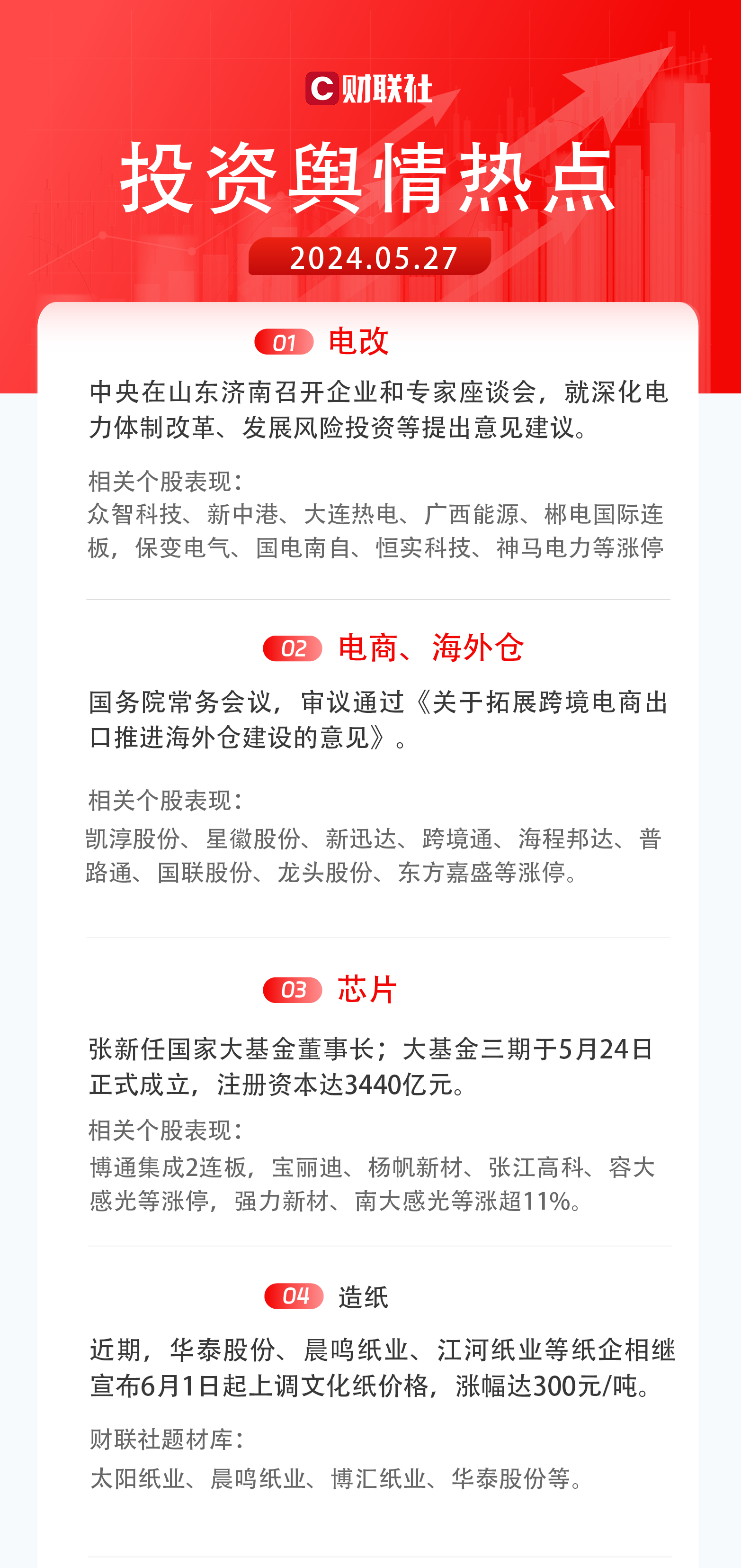 3)芯片:国家集成电路产业投资基金三期股份有限公司于5月24日正式成立,注册资本达3440亿元。
