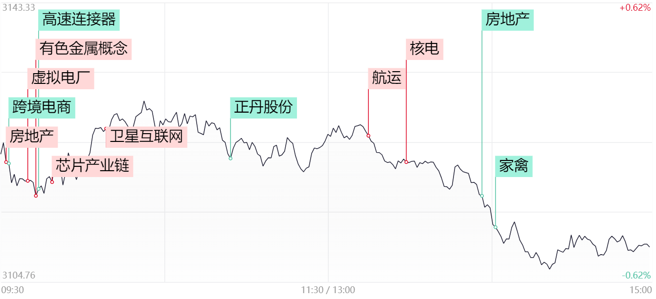 财联社5月29日电,市场全天震荡调整,创业板指、深成指双双跌超1%。总体上个股跌多涨少,全市场超4100家个股下跌。沪深两市成交额7417亿,较前日缩量331亿。1)六大国有银行宣布合计向国家集成电路大基金三期投资1140亿元,刺激半导体产业链一度冲高,上海贝岭、台基股份、富满微、国科微等此前股价已经严重超跌,其中已经鲜有机构持仓的品种成为资金主攻方向,资金筹码博弈意味较为明显。2)电力、电网产业链再度加强,郴电国际、大连热电晋级3连板,明星电力、西昌电力缩量反包上板。众智科技20CM3连板,神马电力晋级2连板也刷新阶段新高。3)近期有关商业航天领域利好频传,叠加光模块概念的斯瑞新材一度触及20厘米涨停,此前两度日内冲板的隆盛科技大涨超10%,佳缘科技、臻镭科技、航宇微、天银机电等逆势活跃。4)涨价概念十倍人气股正丹股份出现跳水,尾盘一度触及跌停,对整个化工涨价概念股人气构成杀伤,例如宝丽迪、百川股份、瑞丰高材、常青科技等亦悉数位居跌幅前列,或标志着涨价概念主升行情的落下帷幕。