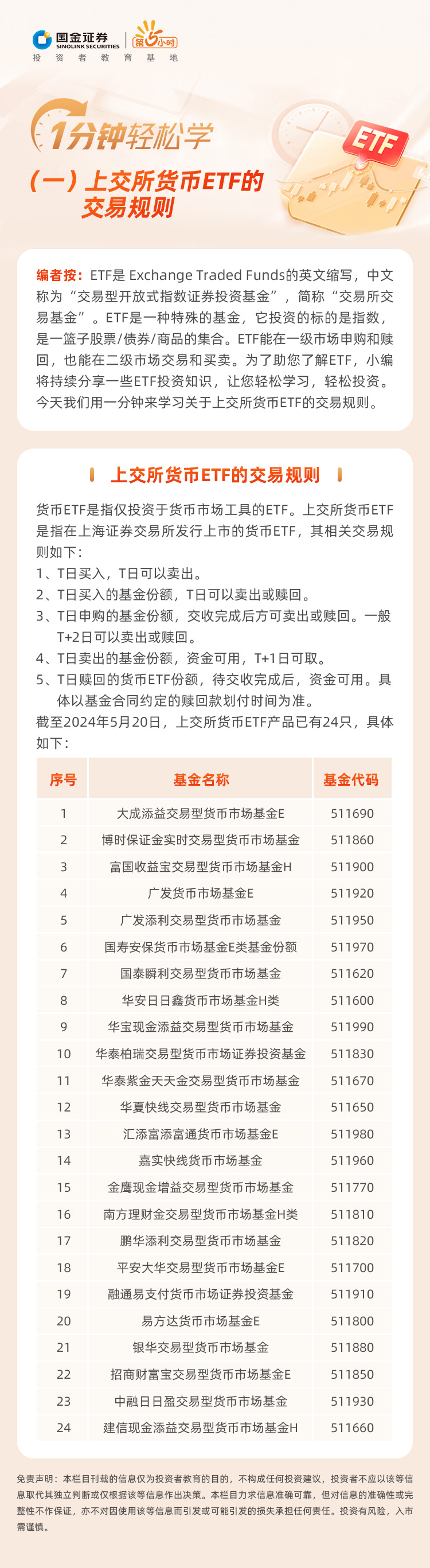 一分钟轻松学∣(一)上交所货币ETF的交易规则