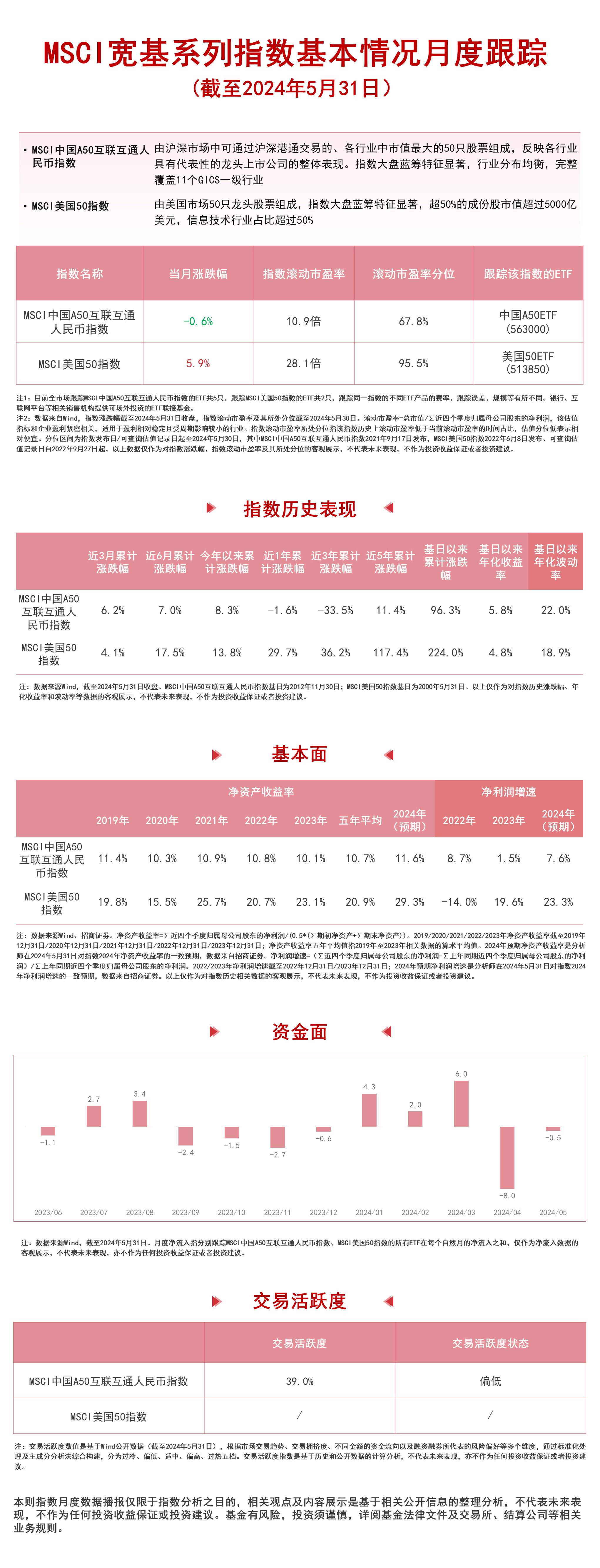 财联社6月5日电,5月份,MSCI中国A50互联互通人民币指数下跌0.6%,MSCI美国50指数上涨5.9%。