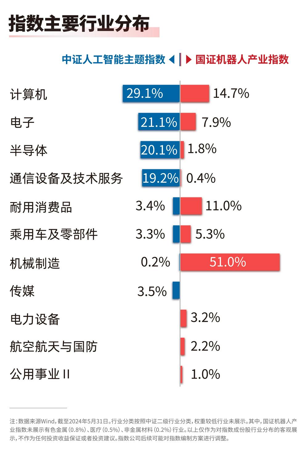 中证人工智能主题指数聚焦人工智能产业链各细分环节龙头;国证机器人产业指数聚焦人工智能硬件终端,机械制造、计算机行业占比较高。人工智能ETF(159819)、机器人100ETF(159530)等跟踪相关指数的产品受到市场关注。