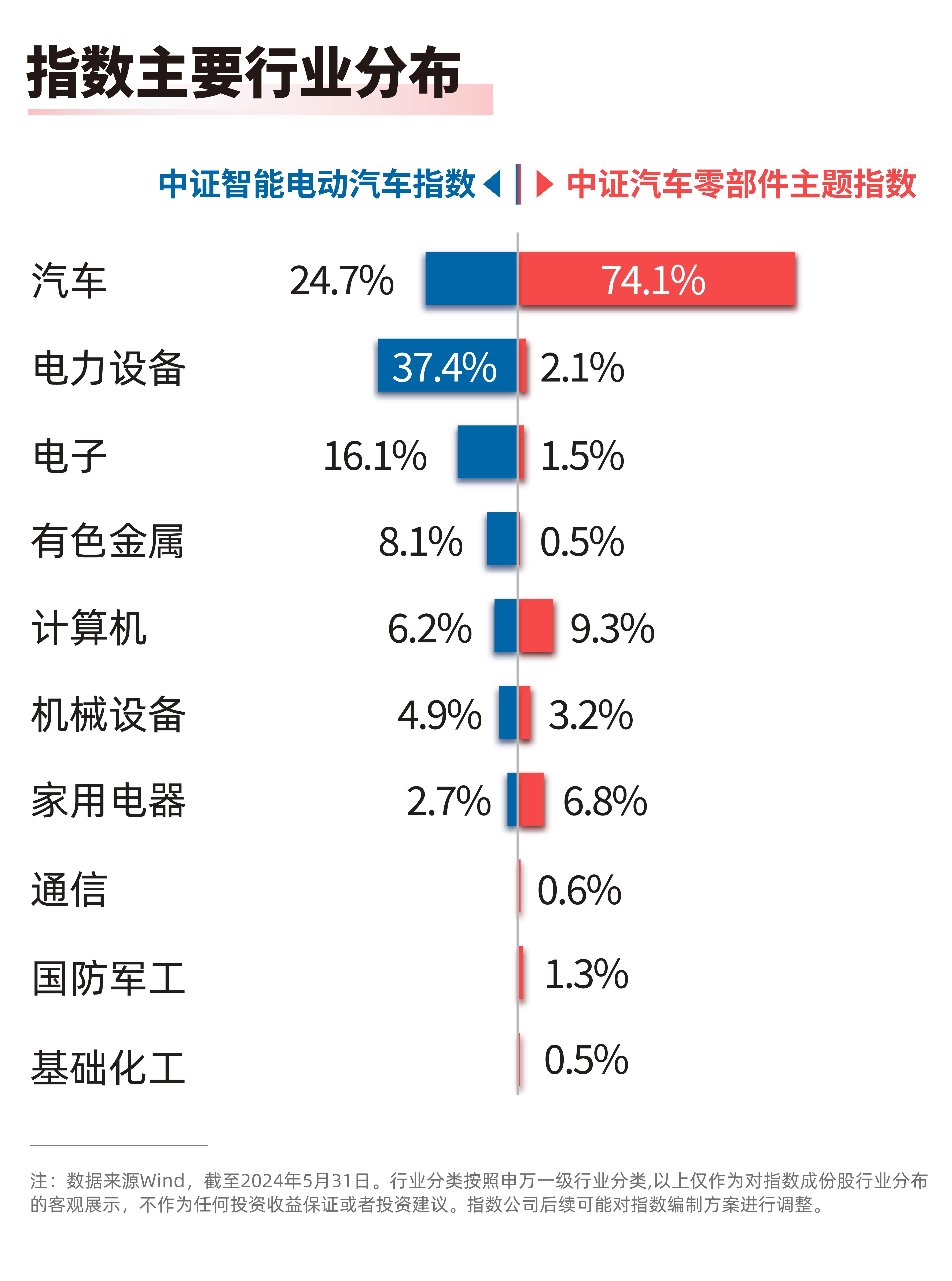 以上内容由EFundGPT生成。中证智能电动汽车指数以电力设备、汽车、电子为前三大权重行业、合计占比近80%;中证汽车零部件主题指数以汽车行业为第一大权重行业、占比近75%。智能汽车50ETF(516590)、汽车零部件ETF(159565)等产品,可助力投资者布局新能源汽车产业。