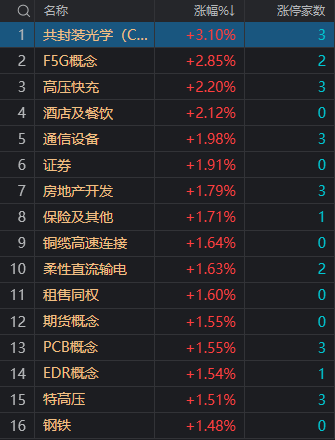 财联社6月14日电,市场全天震荡反弹,三大指数均小幅上涨。盘面上,CPO概念股集体走强,新易盛、中际旭创均再创历史新高,剑桥科技涨停。PCB概念股反复活跃,沪电股份、胜宏科技创历史新高,威尔高、晨丰科技涨停。大金融股午后拉升,香溢融通涨停,海通证券一度涨停。地产股盘中异动,冠城大通涨停,中交地产一度涨停。电网概念股表现活跃,中辰股份、奥特迅、长城电工、北京科锐等涨停。下跌方面,CRO概念股展开调整,泰格医药跌超5%。总体上个股涨多跌少,全市场超2600只个股上涨。沪深两市今日成交额8481亿,较上个交易日放量956亿。板块方面,CPO、证券、房地产、特高压等板块涨幅居前,科创板次新、CRO、人形机器人、军工等板块跌幅居前。截至收盘,沪指涨0.12%,深成指涨0.5%,创业板指涨0.76%。