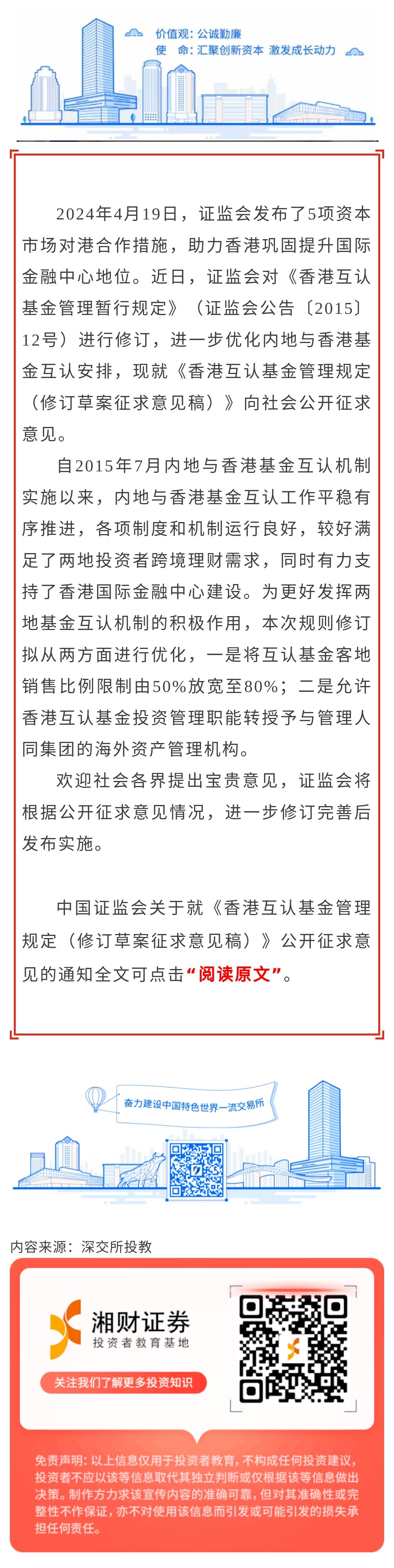 【深交所投教】证监会就《香港互认基金管理规定(修订草案征求意见稿)》公开征求意见