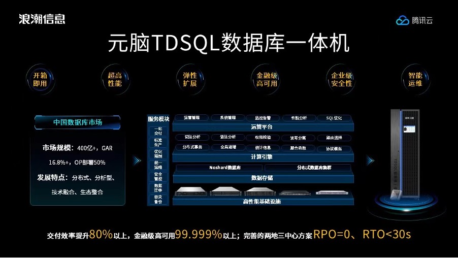 财联社记者从浪潮信息方面了解到,元脑TDSQL数据库一体机采用一体化、分布式架构,可提供单节点数十万QPS、单实例千万级QPS流量的数据处理性能,兼容MySQL、PostgreSQL、Oracle等主流数据库的迁移应用。据悉,浪潮信息可提供X86架构、ARM架构服务器,兼容腾讯云产品,联合进行适配测试。