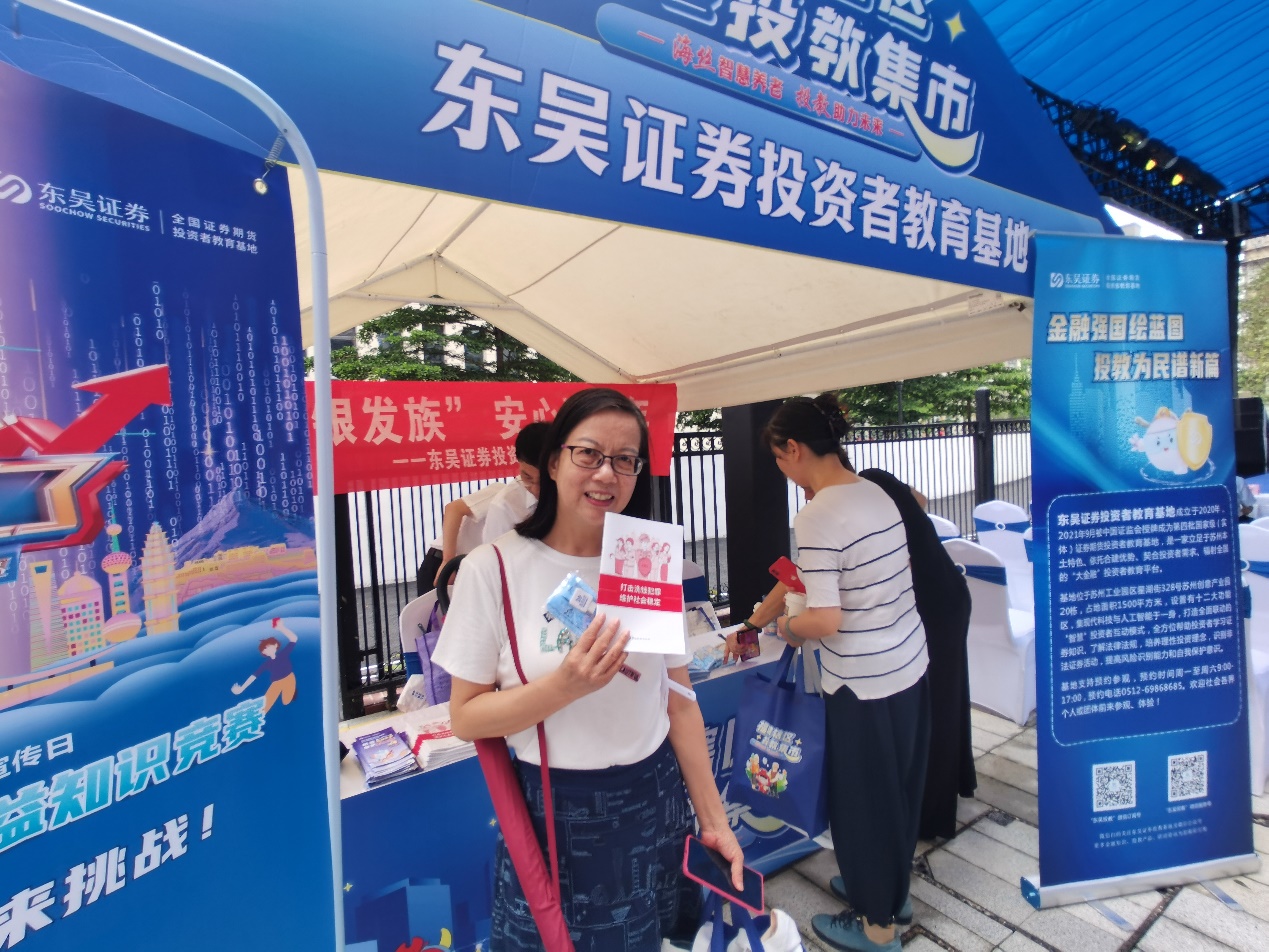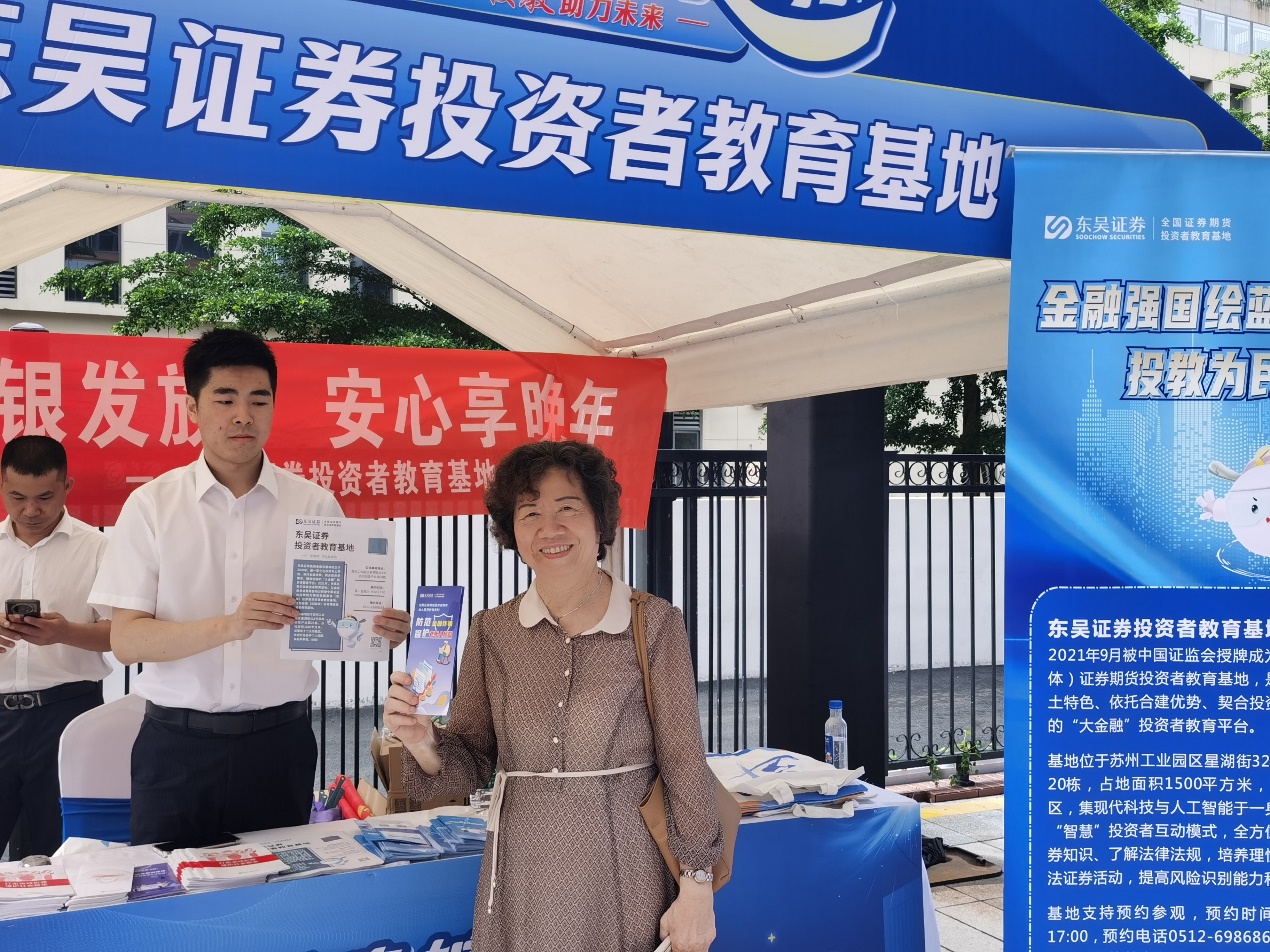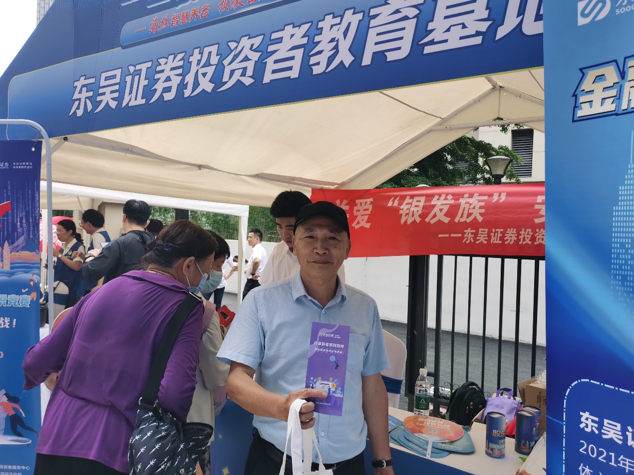 本次活动东吴证券投教基地展台以“关爱银发族 安心享晚年”为主题,投教专员与营业部工作人员通过生动的案例和深入浅出的讲解,为老年投资者们普及证券市场的基础知识、向其进行投资者风险教育,引导其识别和防范非法证券活动。