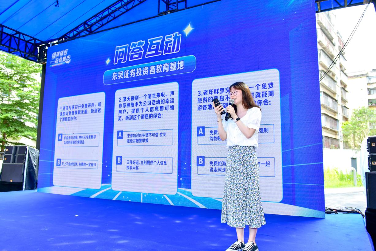 为了深入贯彻落实中央金融工作会议精神,普及金融知识,提高投资者风险意识,增强投资者自我保护能力,6月14日,在深交所、福建证监局、福建省证券期货业协会、财联社的指导下,东吴证券投资者教育基地联合福州五一北路证券营业部走进福建老年大学,开展“海丝智慧养老 投教助力未来”投资者教育集市活动,旨在提升中老年投资者群体的金融素养,助力其树立防非反诈、理性投资的正确理念。