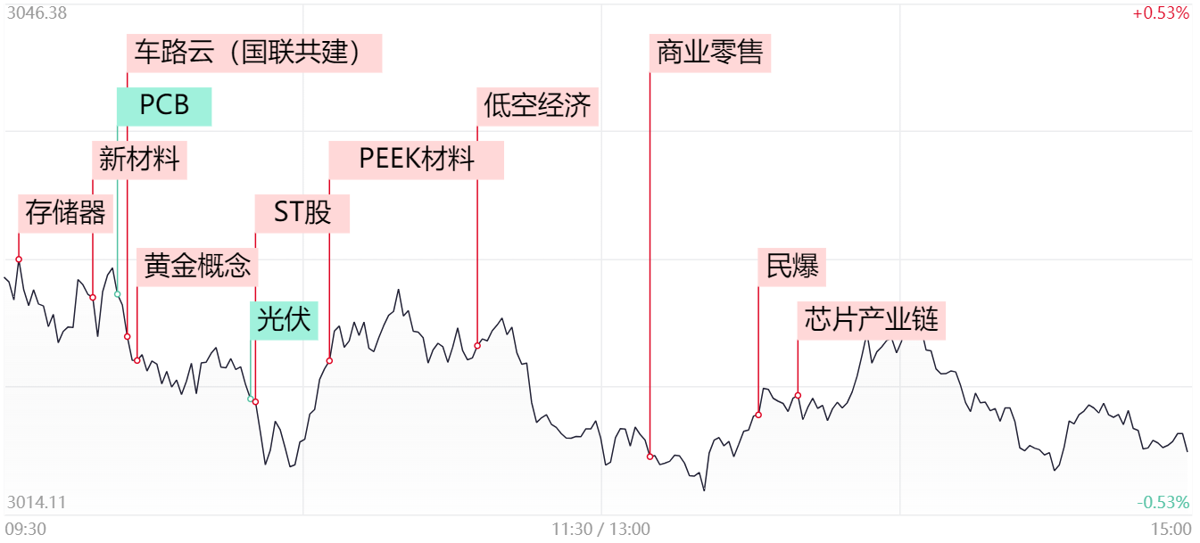 财联社6月20日电,市场全天震荡调整,创业板指领跌。总体上个股跌多涨少,全市场超3500只个股下跌。沪深两市成交额7048亿,较前日缩量322亿。1)各地的大规模投资相继落地,刺激车路云概念早盘继续扩散,长江通信、华铭智能、金溢科技、索菱股份等前排核心继续连板晋级,并扩散至智能交通、地理信息、智慧停车乃至工程设计等细分。测绘股份、苏交科等低位品种批量涨停,甚至带动低空经济概念盘中展开修复动作。2)HBM先进存储订单2025年已被预订一空,午后半导体产业链再度逆势向上拉升,科创板次新股艾森股份一度冲击涨停,而晶方科技、科翔股份、气派科技、好上好等存储和封测类个股纷纷涨停。3)英伟达一举登顶全球市值第一公司,浪潮信息逆势涨超4%,工业富联、新易盛、中际旭创等大票在新高后,继续维持高位缩量强势震荡,可见这些主流品种的资金锁仓迹象凸显。4)黄金等大宗商品价格表现回暖,刺激有色以及石油等资源股展开修复。盛屯矿业涨停,洛阳钼业、紫金矿业以及“三桶油”股价不同程度收涨。而港股市场资源股涨势更为凌厉,中国海洋石油涨近6%续创历史新高,中国石油和中国石化也双双涨超3%,中国神华盘中也一度涨超3%。