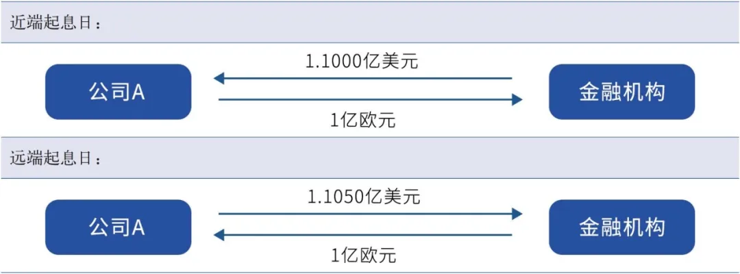 通过该交易,公司A在近端起息日将贷款所得的欧元以约定汇率兑换为美元,满足公司A的美元资金需求;在远端起息日以约定汇率兑换回欧元,从而锁定远端起息日购入欧元的汇率,进而对冲偿还贷款时本金部分面临的汇率风险。