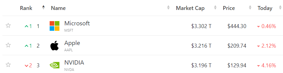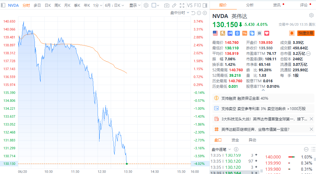 英伟达跌幅扩大至4% 盘中总市值回落至微软、苹果之下
