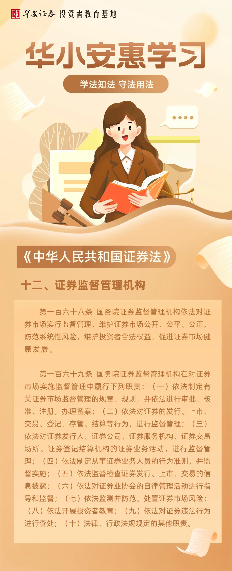 华小安惠学习 | 新《证券法》:国务院证券监督管理机构依法对证券市场实行监督管理