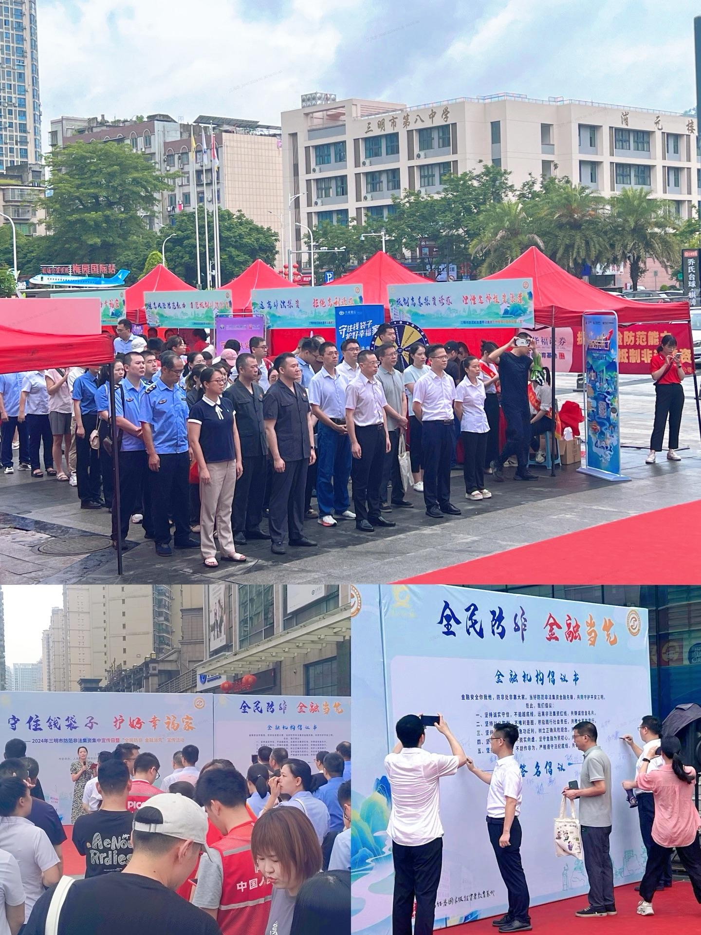 为贯彻落实中央、省委和市委金融工作会议精神,深入实施《防范和处置非法集资条例》,严厉打击非法集资等非法金融活动,扎实推进培育和弘扬中国特色金融文化。2024年6月15日,华福证券三明分公司承办了主题为“守住钱袋子· 护好幸福家”的三明市防范非法集资集中宣传日暨 “全民防非·金融当先”宣传活动。本次活动由三明市处非办、人民银行三明市分行、国家金融监督管理总局三明监管分局主办,市中级人民法院、市检察院、市公安局和市场监管局协办,市级金融机构全部派代表到场参与,共计100余人。华福证券三明分公司、兴业银行三明分行等7家金融机构作为首批活动参与单位,于现场设置多个防非宣传摊位,向投资者及市民提供主题鲜明、丰富多彩、趣味性十足的金融防非宣传活动。
