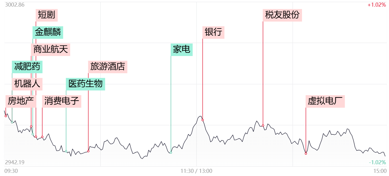 ①今日三大指数再度全线走低,全市场超4700只个股下跌,量能进一步萎缩至6300亿之下; ②高位股分歧加剧,此前5板的金麒麟上演“天地板”,两市炸板率也接近4成; ③银行股逆势走强,工商银行、南京银行、渝农商行等多只个股创年内新高。