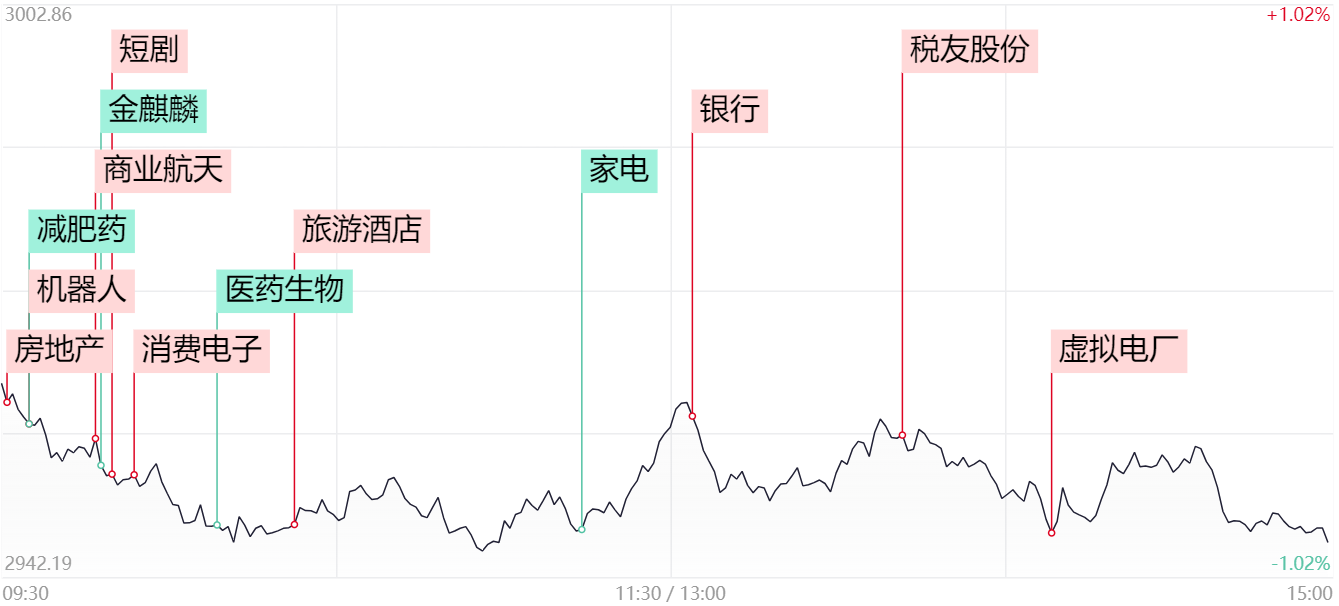 财联社6月28日电,市场全天低开低走,创业板指领跌。总体上个股跌多涨少,全市场超4700只个股下跌。沪深两市成交额6264亿,较前日缩量170亿。1)AI应用端如期分化,但一些前排个股表现仍较为抗跌,线上线下、深圳瑞捷、华扬联众均实现连板晋级,因赛集团、荣信文化等盘中继续逆势大涨。2)亚洲消费电子展即将来临,结合苹果新款头显以及AI带动的新款手机的换机潮,对于消费电子板块仍形成多重催化,使得消费电子板块维持强势,瀛通通讯走出2连板,包括领益智造、东山精密、立讯精密等板块内容量大票盘中仍一度大幅冲高。3)高端装备类方向仍维持局部活跃态势,叠加工程机械和减速器概念的超跌创业板股金道科技走出3连板,叠加中报预增的凯中精密则继续一字涨停晋级3连板,腾亚精工、延华智能、建科智能、赛摩智能、克劳斯等均一度冲高。4)近期10年、30年国债期货迭创历史新高,刺激红利类个股继续上行,沪农商行、南京银行、渝农商行等多家城商行逆势拉升。此外桂冠电力、黔源电力、国投电力、长江电力等水电股继续逆势飘红。