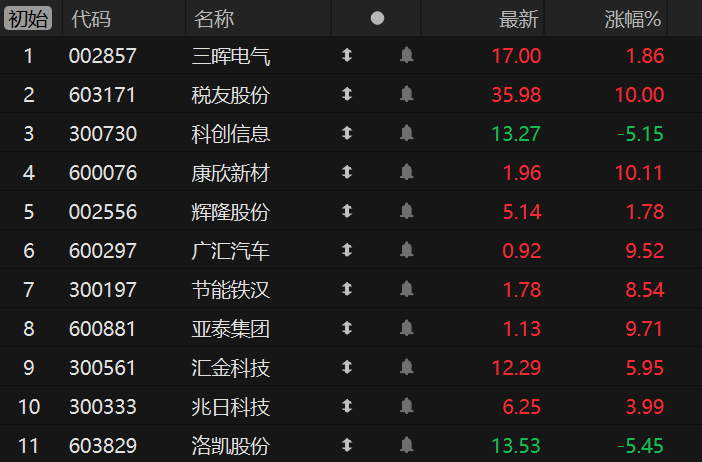 财联社7月3日电,市场焦点股三晖电气(5板)高开1.86%,财税数字化概念股税友股份(6天5板)竞价涨停、科创信息(创业板4天2板)低开5.15%,土地流转概念股康欣新材(3板)竞价涨停、辉隆股份(2板)高开1.78%,低价股广汇汽车(5天3板)竞价涨停、节能铁汉(创业板2板)高开8.54%、亚泰集团(2板)竞价涨停,金融科技概念股汇金科技(创业板2板)高开5.95%、兆日科技(创业板首板)高开3.99%,智能电网板块洛凯股份(2板)低开5.45%。
