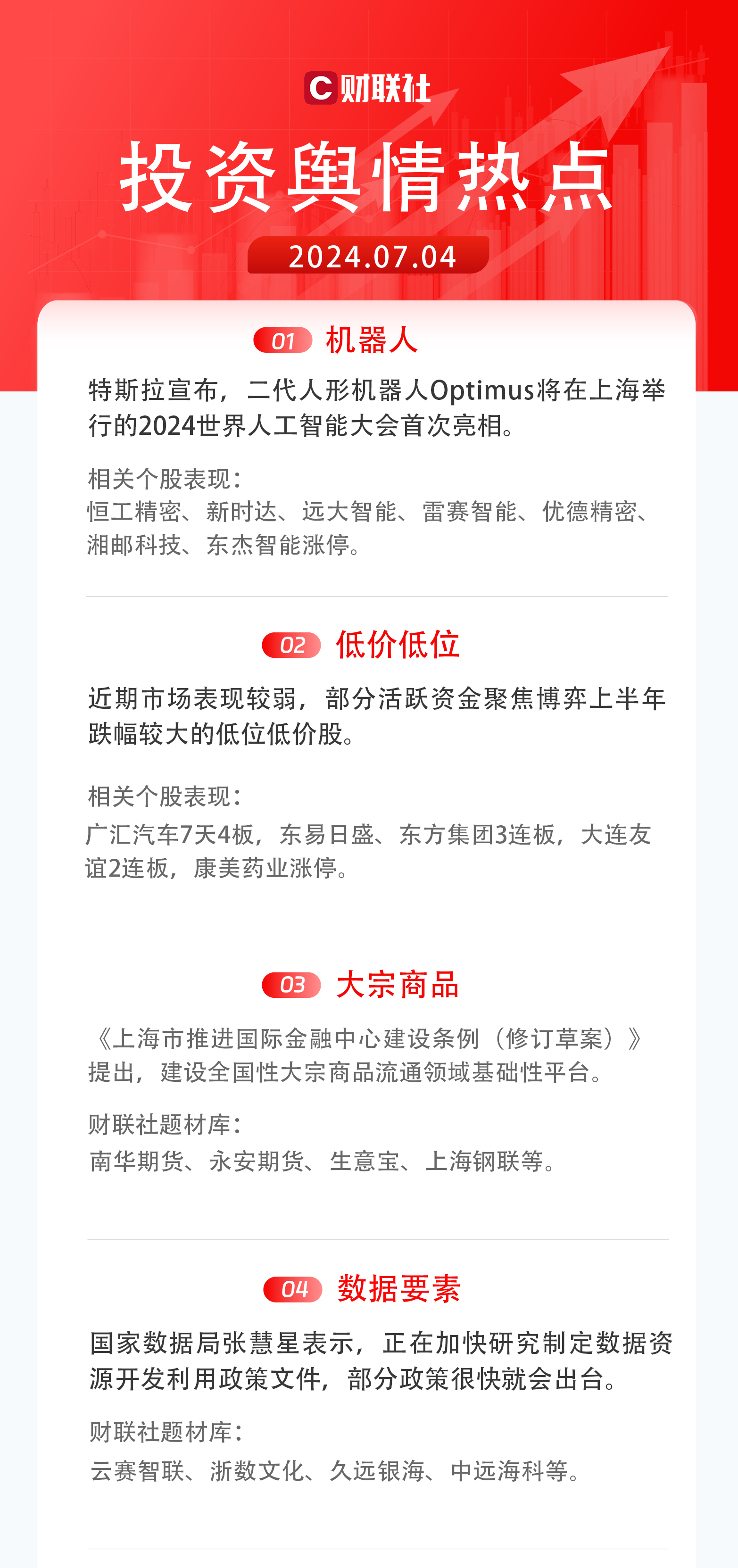 4)数据要素:国家数据局张慧星表示,正在加快研究制定数据资源开发利用政策文件,部分政策很快就会出台。