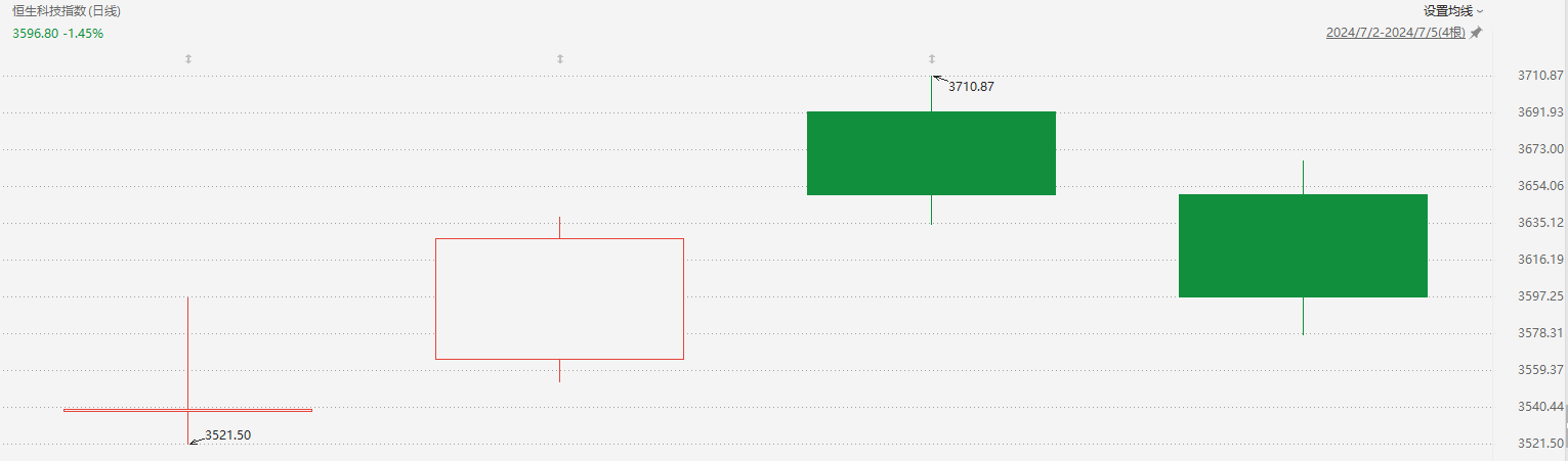 财联社7月5日讯(编辑胡家荣)港股市场在本周迎来7月1日这一重要时点,整体仍延续震荡走势。恒生科技指数一度升至3700点上方,随后再度回落。