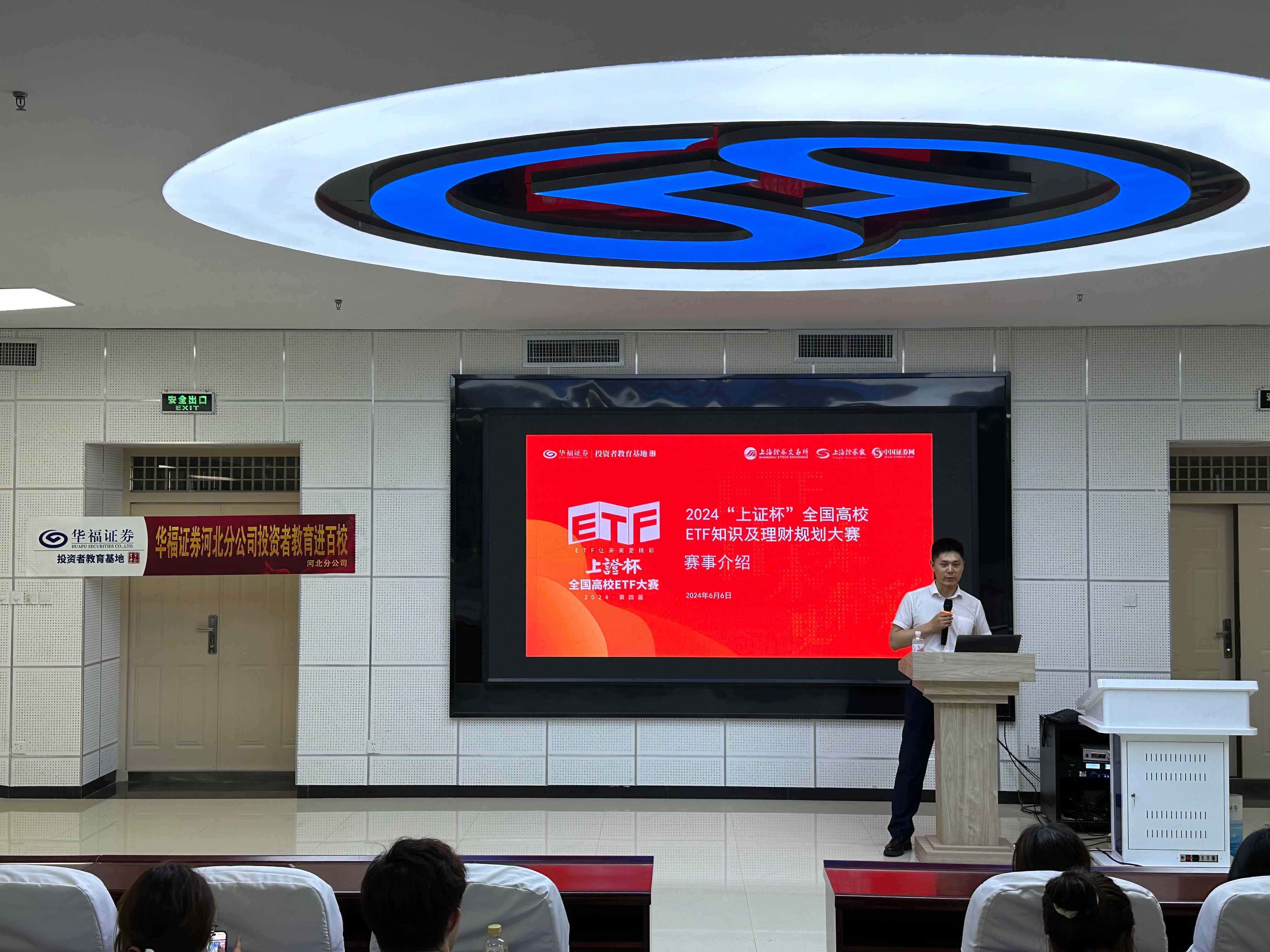 6月28日,华福证券河北分公司走进河北金融学院开展投资者教育进百校活动。近期,2024“上证杯”全国高校ETF知识及理财规划大赛已拉开序幕,华福证券河北分公司以“指数股(ETF)大讲堂”为主题开展投资者教育讲座,现场共计110余名师生参加。