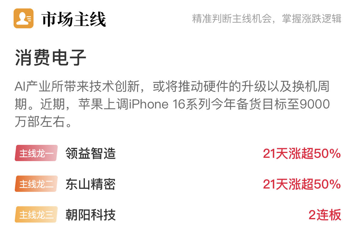 市场主线:消费电子板块再迎爆发 午后留意科技股能否进一步带动短线情绪回暖