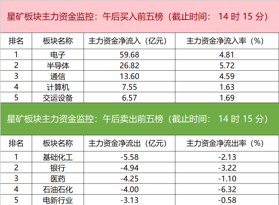 主力资金监控:电子板块净流入超59亿元