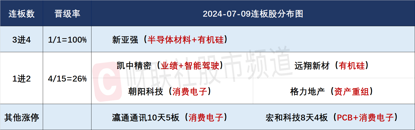 今日共49股涨停,连板股总数5只,上一交易日共19只个股涨停,涨停股晋级率26.31%(不含ST股、退市股及未开板新股)。个股方面,全市场超4200只个股上涨,新亚强竞价涨停晋级4连板,低价股集体回调,东方集团、广汇汽车等个股跌停。板块方面强者恒强,锚定美股苹果的消费电子板块与锚定美股英伟达的AI硬件板块联袂大涨,消费电子板块近30股涨停或涨超10%,其中朝阳科技2连板、瀛通通讯10天5板、宏和科技8天4板,消息面上,苹果股价昨晚创历史新高,有产业链人士表示,苹果上调iPhone 16系列今年备货目标至9000万部左右;AI硬件方向高速连接器细分表现最强,神宇股份、胜蓝股份、凯旺科技20CM涨停,此外中际旭创、沪电股份再创历史新高。