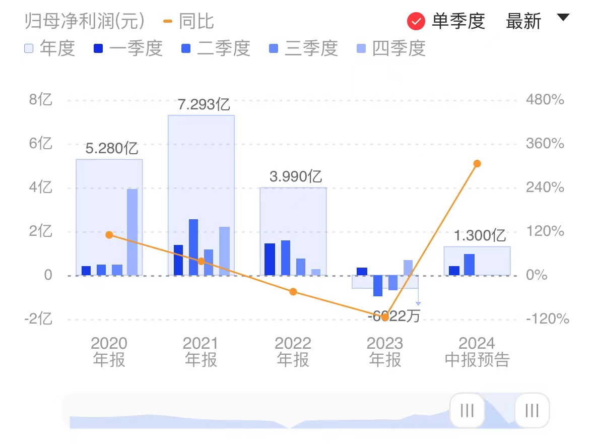 财联社7月9日电,上海贝岭发布业绩预告,预计公司2024年半年度实现归属于母公司所有者的净利润为1.2亿元到1.4亿元,与上年同期(法定披露数据)相比,将实现扭亏为盈。报告期内,集成电路行业部分市场需求复苏、景气度提升,下游客户需求有所增长。小财注:Q1净利3689.91万元,据此计算,预计Q2净利8310万元-10310万元,环比增长125%-179%。