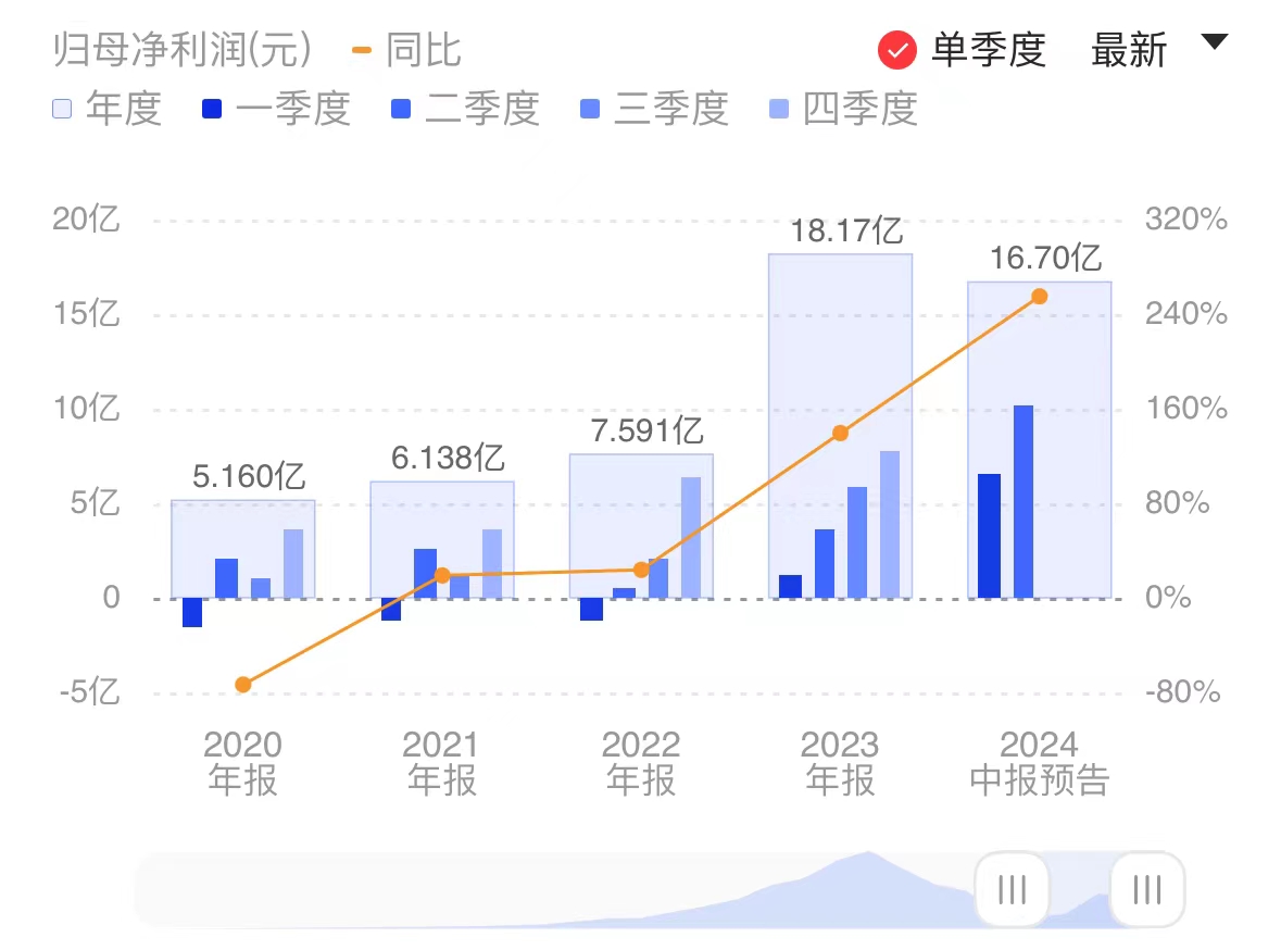 财联社7月9日电,宇通客车公告,公司预计2024年半年度归属于上市公司股东的净利润为15.5亿元至17.9亿元,同比增加230%至280%。业绩增长主要得益于公司客车销量的提升,2024年上半年累计销售客车20555辆,同比增长35.82%。其中,海外市场出口销量大幅增长,国内市场受旅游业复苏影响,销量也有所增加。小财注:Q1净利6.57亿元,据此计算,预计Q2净利8.93亿元-11.33亿元,环比增长36%-72%。