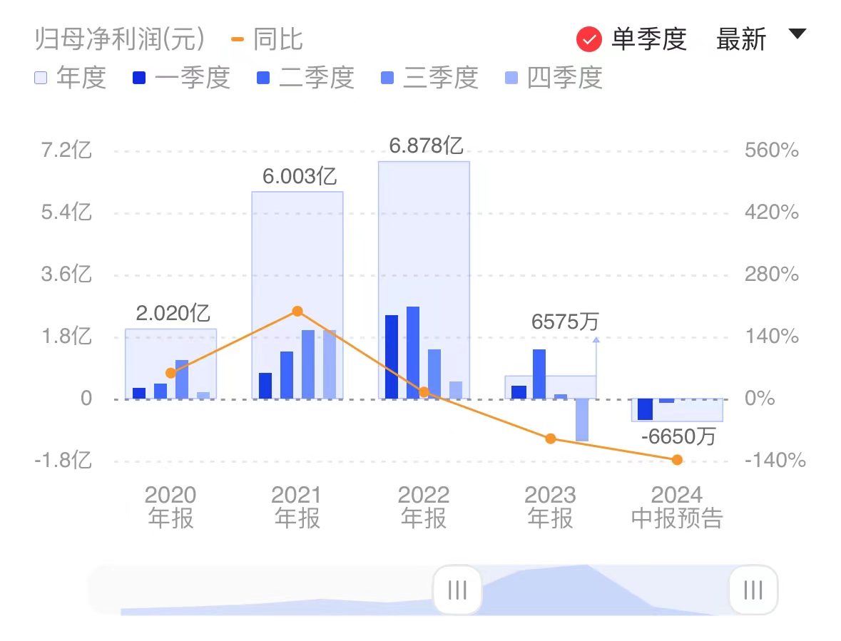 财联社7月9日电,立昂微公告,公司预计2024年上半年归属于上市公司股东的净亏损5950万元至7350万元,上年同期净利润1.74亿元。业绩下滑主要由于综合毛利率大幅减少,折旧成本增加及销售单价下降所致。小财注:Q1净亏损6315.14万元,据此计算,预计Q2净利为亏损1035万元到盈利365万元。